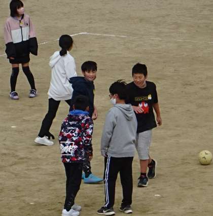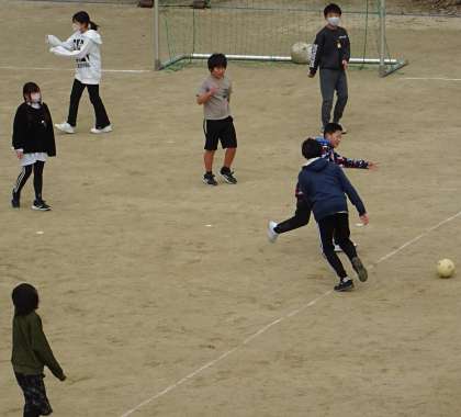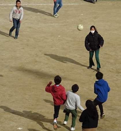 寒さに負けず、元気に外で遊ぶ子どもたち。