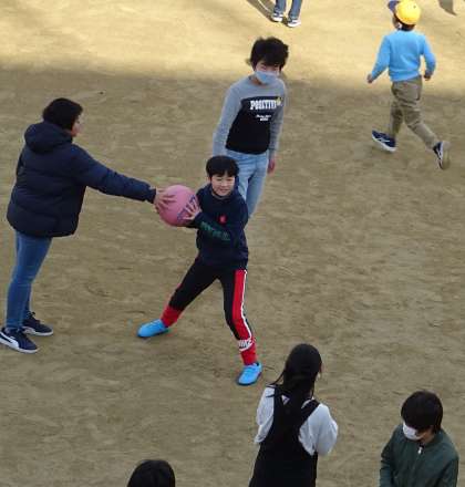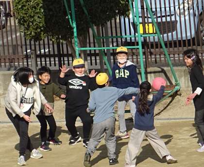 運動場で元気に遊ぶ子どもたちの様子です。