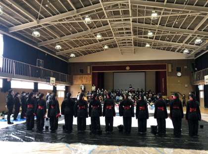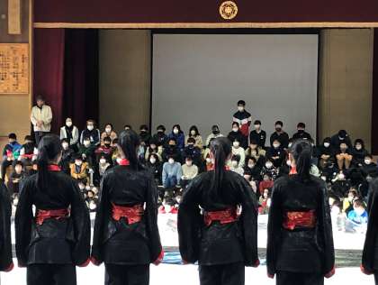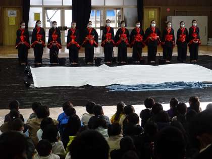 本物に触れる貴重な体験学習を大切にしている加美東小学校に、今年も上宮高校書道パフォーマンス部の皆さんが来てくれました。