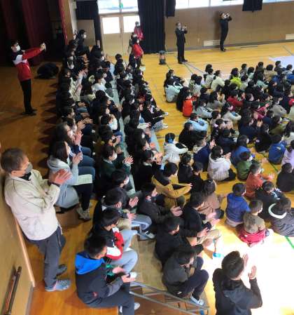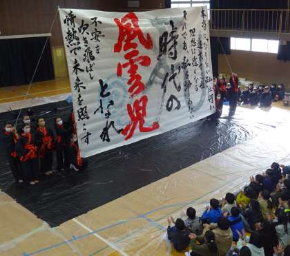 書が立ち上がり披露されると、子どもたちから大きな拍手が送られました。