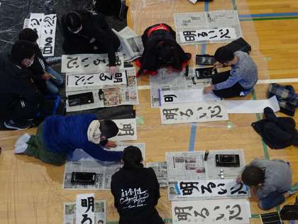 上宮高校書道パフォーマンス部の皆さんは、3年生が書いた文字を、とにかくほめてくれました。