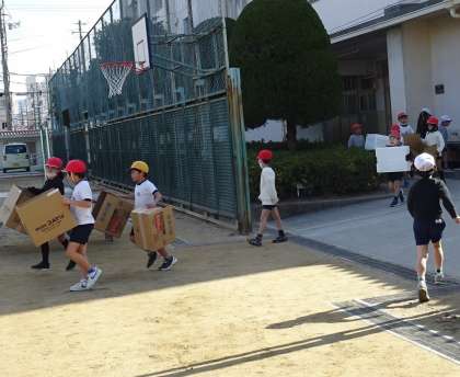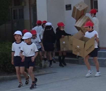 先生の話をしっかりと聞いてから、みんなで活動の準備をします。