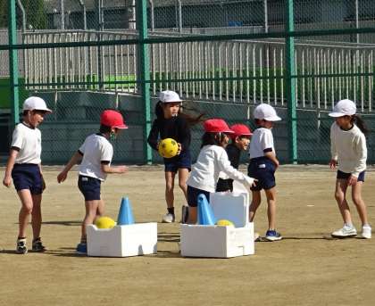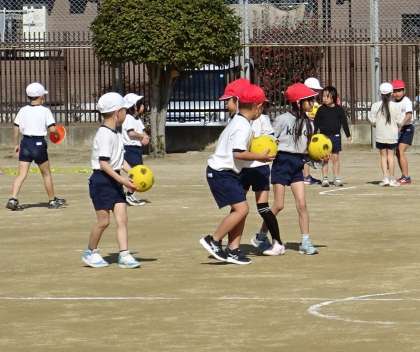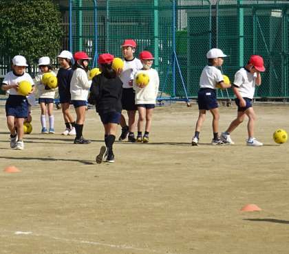 楽しみながらボールを蹴っている様子です。