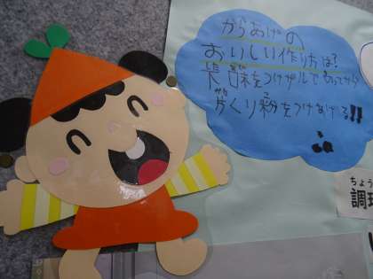 いつもおいしい給食を作ってくれている給食調理員さんへ、子どもたちからの感謝のメッセージです。