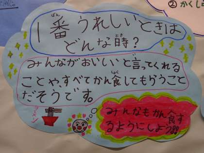 子どもたちからのかわいい質問と調理員さんの優しい答えに、心がポカポカになります。