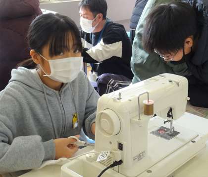 雑巾づくりをしている様子です。
