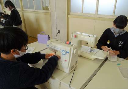 雑巾づくりをしている様子です。