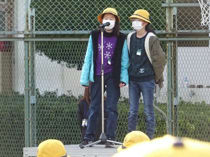 児童会から「あいさつ運動」について、全校のみんなに向けた呼びかけがありました。