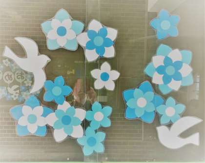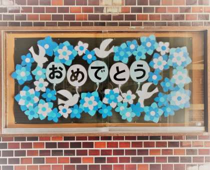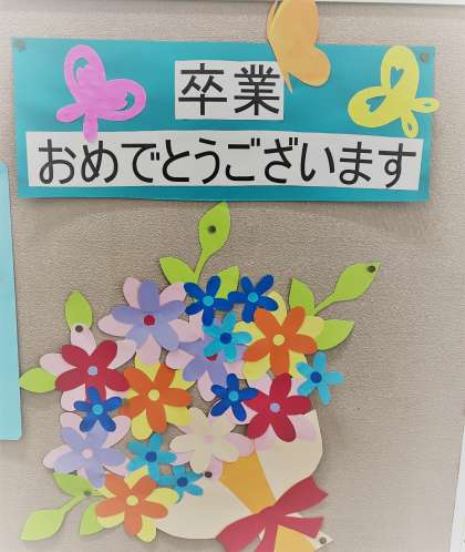 卒業を祝うメッセージが飾られています🌸