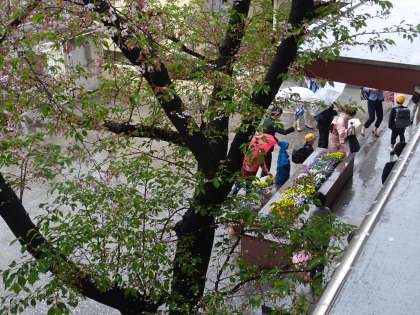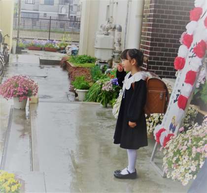 朝から雨でしたが、校門をくぐる新1年生はみんな笑顔でした。