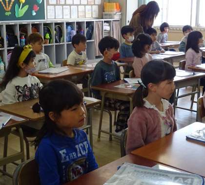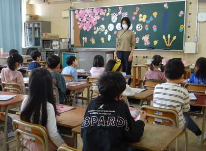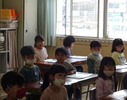 1年生は始業式には参加せず、教室で担任の先生の話を聞いていました。
