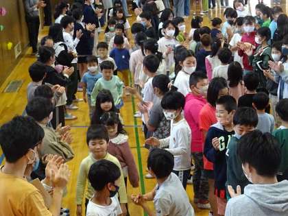 笑顔と拍手に包まれながら、お兄さんお姉さんの間を通っていきます。
