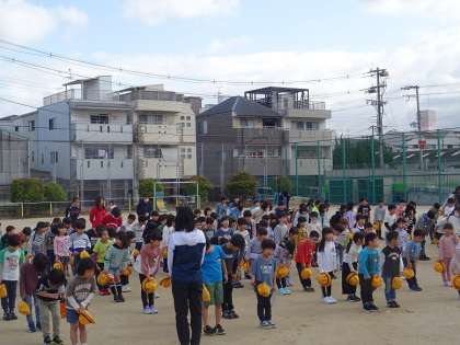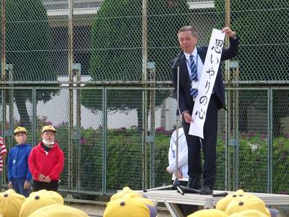 全校そろっての児童朝会の様子です。