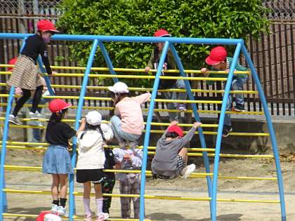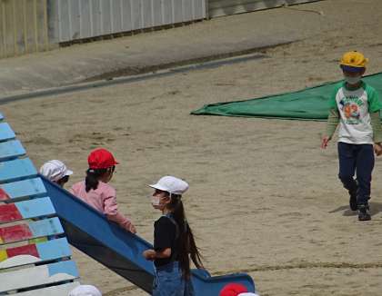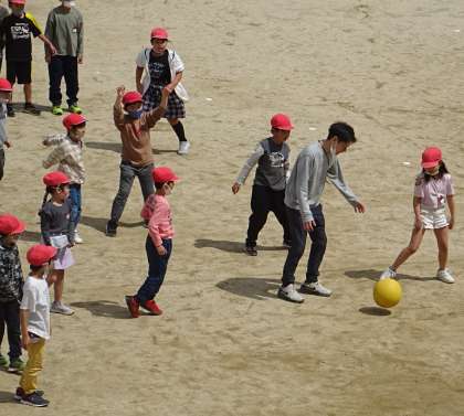 運動場で楽しく遊んでいる様子です。