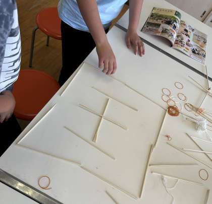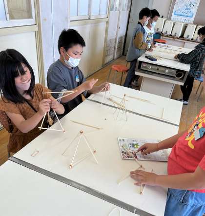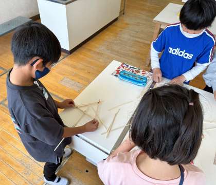 4年生は、図工の授業で割りばしを使った作品を作りました。