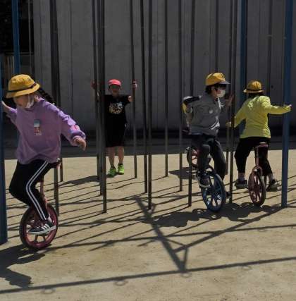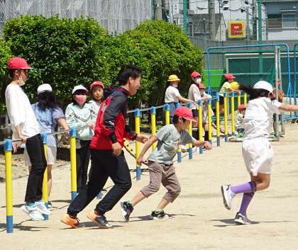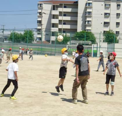 運動場で楽しく遊んでいる様子です。