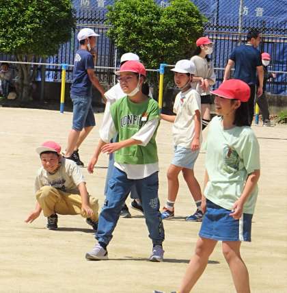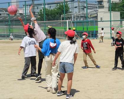 運動場で楽しく遊んでいる様子です。