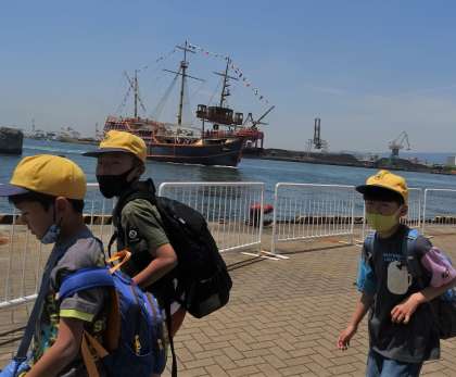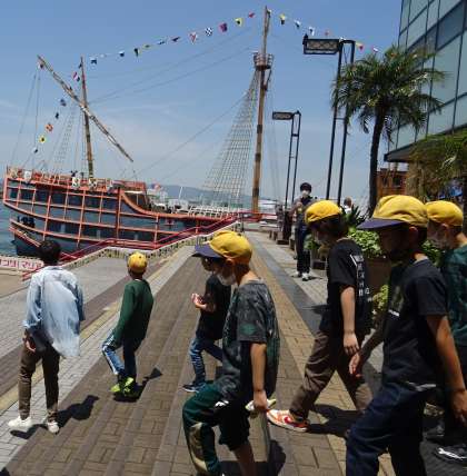 海遊館を出ると、遊覧船「サンタマリア号」が大阪湾巡りから帰ってきました。