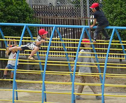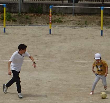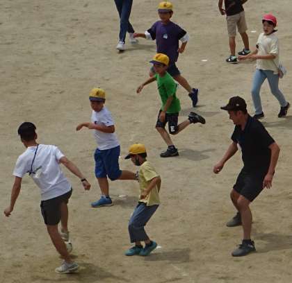 運動場で楽しく遊んでいる様子です。