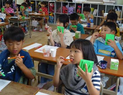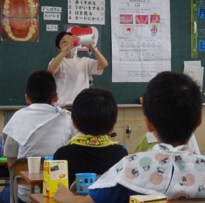 歯医者さんに来ていただき、歯みがきについて学習しました。