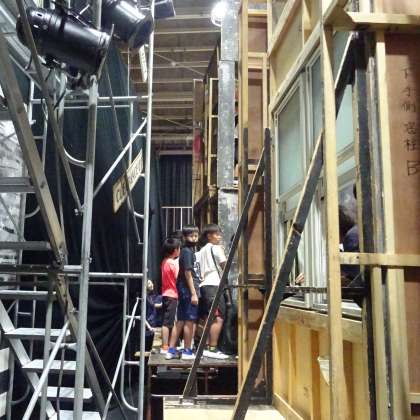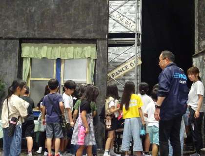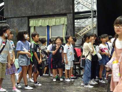 舞台セットを見学している様子です。