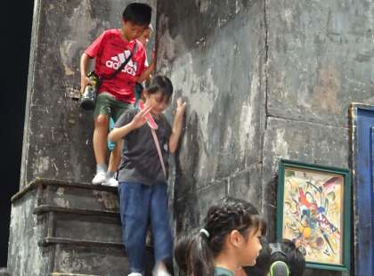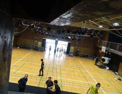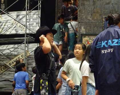 舞台セットを見学している様子です。