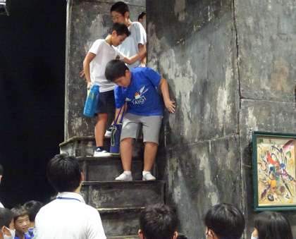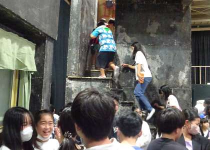 舞台セットを見学している様子です。