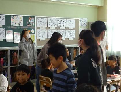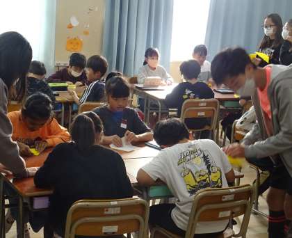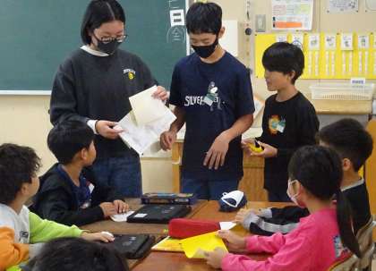 6年生による折り鶴教室の様子です。