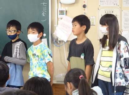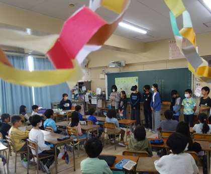 6年生による折り鶴教室の様子です。