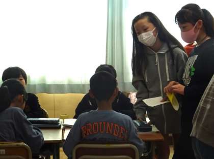 6年生による折り鶴教室の様子です。