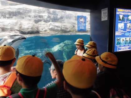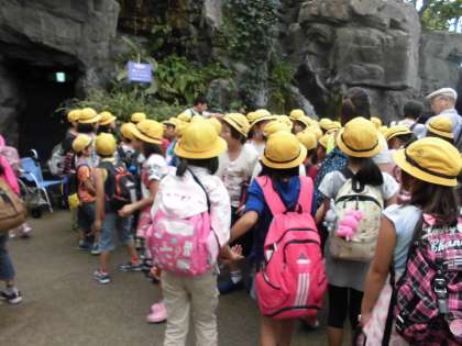 10月9日(金)、子ども達はワクワクしながら遠足に出発しました。それもそのはず、遠足の行き先は、子ども達が大好きな魚や海の生物の大展示館『海遊館』だったからです。館内では2名ずつのペアで、さまざまな魚などを自分たちのペースで見てまわりました。巨大なジンベイザメや、美味しそうな?イワシの大群などを見ている子ども達の表情は生き生きとしていました。3,4年生の子ども達の胸の中には、とても大きな素敵な記憶が刻まれたようです!