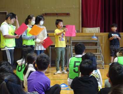 各学級では、学年での学習を活用した楽しいコーナーを設置し、たてわり班のみんなにチャレンジしてもらいました。