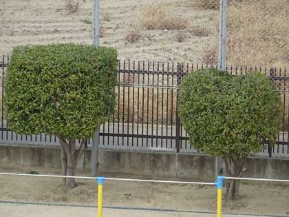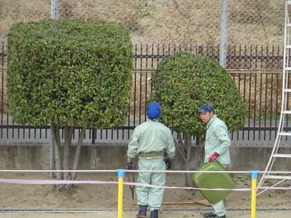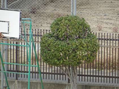 管理作業員さんが、校庭のきんもくせいをオシャレにカットしてくれました✂