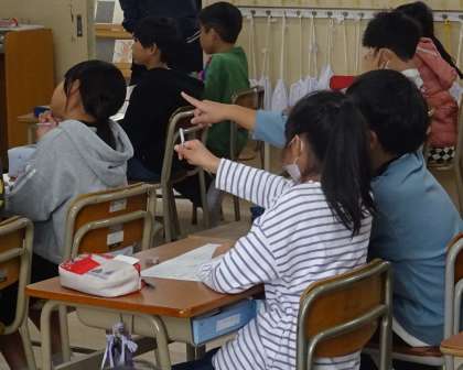 3年生の子どもたちは、クイズや体験を通して感じたことを感想に書いて話し合いました。