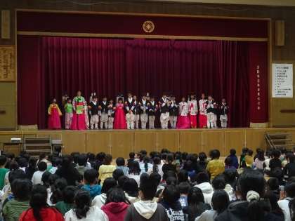 迫力ある美しい演技や演奏が終わると、全校のみんなから温かい大きな拍手が送られました。