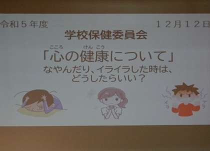 今年度の学校保健委員会は、全校児童が講堂に集まって実施することができました。