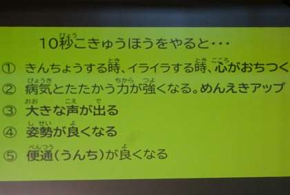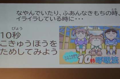 イライラを解消するための「10秒呼吸法」をみんなでやってみよう。