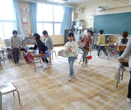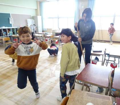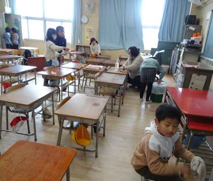 1年間楽しく過ごした教室をきれいに掃除している様子です。