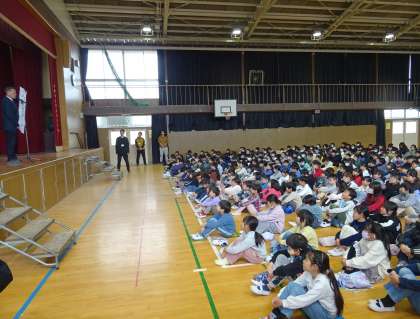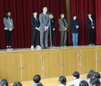 本校を去られることが決まっている教職員から、子どもたちにあいさつがありました。