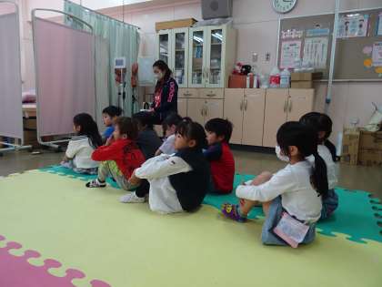 検査が終わったら、使った「遮眼子」を自分で消毒できていました。