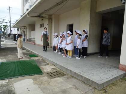 「しっかり手を洗いましょう。そして、きれいなハンカチで手をふきましょう。」と給食委員の声かけに4年1組の当番さんが「はい!」と元気よく返事をしていました。