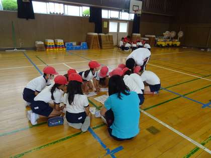 前回のインストラクターの方にもお越しいただき、今回は地域の「竜踊り」についてお話を聞いたり、グループで動きを考えたりする時間もありました。