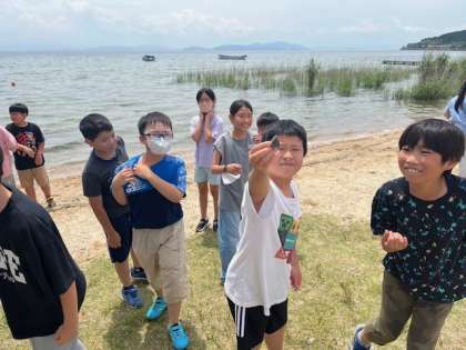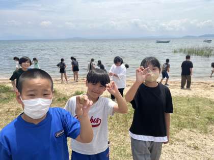 浜遊びで、「おにぎり石見つけた〜」とのことです。