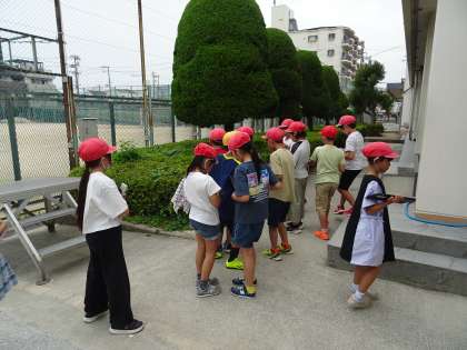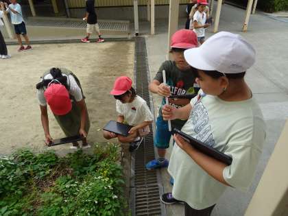 春と比べてどんな変化ああるのか、虫眼鏡・温度計・タブレットを持って観察しました。