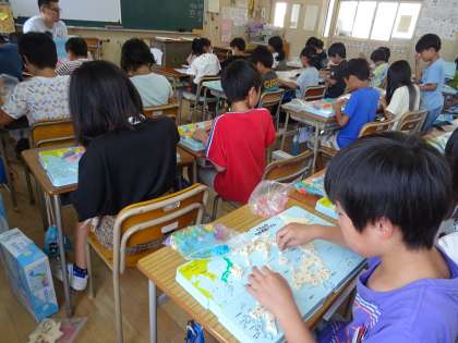 4年1組は日本地図のパズルで都道府県名の復習をしていました。