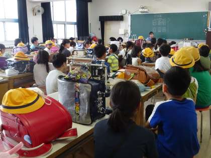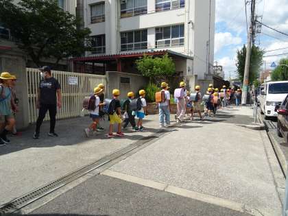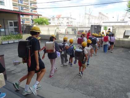 各分団の教室で名簿と集団下校の目的を確認した後、分団ごとに2列で落ち着いて集団下校できました。