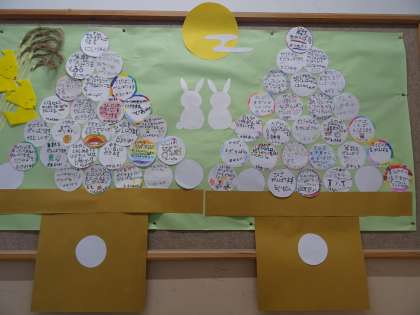 月見団子には一人ひとりの二学期の目標が書いてあります。