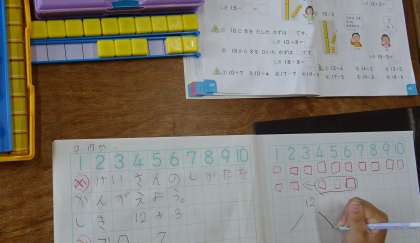 ブロックを使って、たしざん・ひきざんの計算の仕方を考え、しっかりと発表もできました。