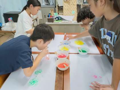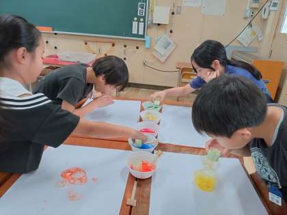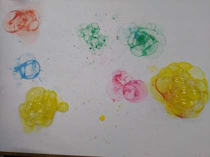 束ねたストローでカラーのシャボン玉を作って重ねていきました。