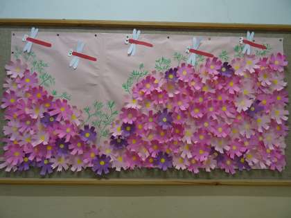 満開のコスモスです。花びらを1枚1枚ていねいに作っています。